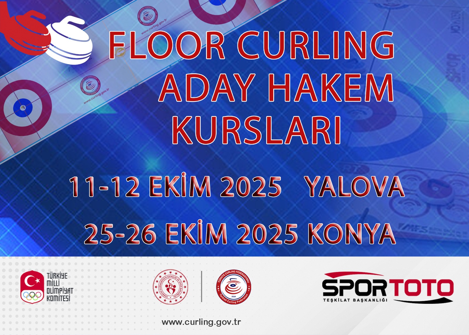Floor Curling Aday Hakem Kursları 11 - 12 Ekim 2025 tarihleri arasında Yalova, 25 - 26 Ekim 2025 tarihleri arasında Konya illerinde yapılac