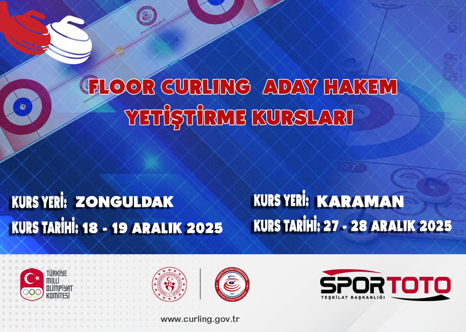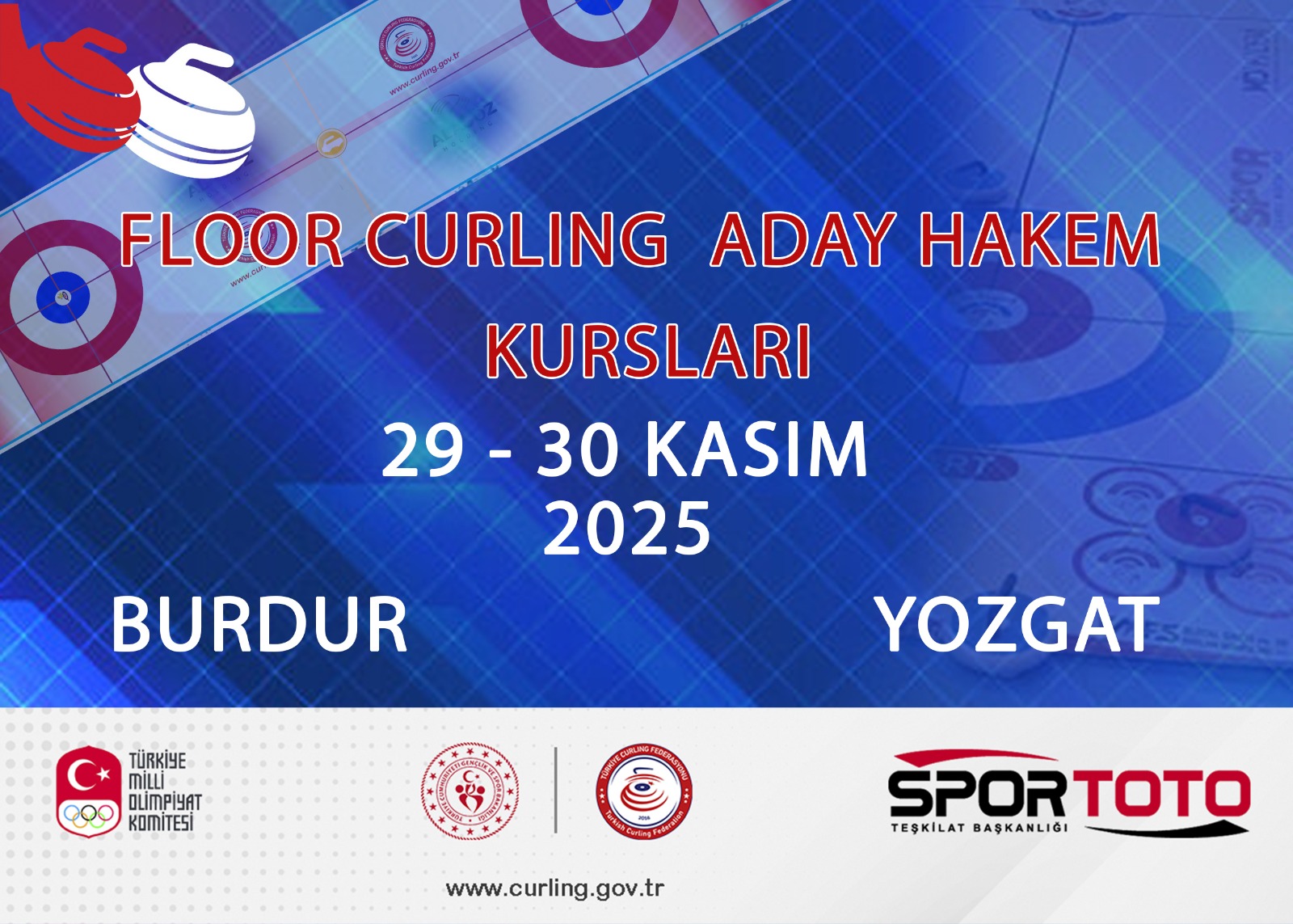 Floor Curling Aday Hakem Kursları 29 - 30 Kasım 2025 tarihlerinde Burdur ve Yozgat İllerinde yapılacaktır.